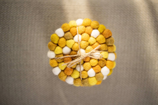 Gelbes Untersetzer-Set, 4-teilig, handgefertigt, gefilzt