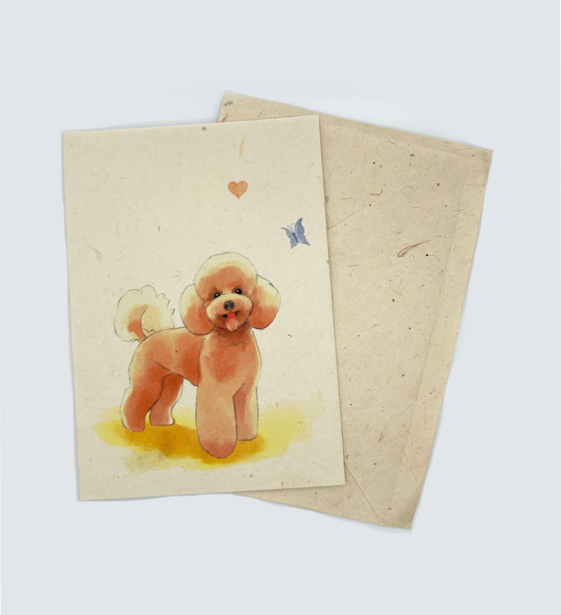 Grußkarte A6, Gedrucktes Lokta-Papier, Handgezeichnet, Pudel