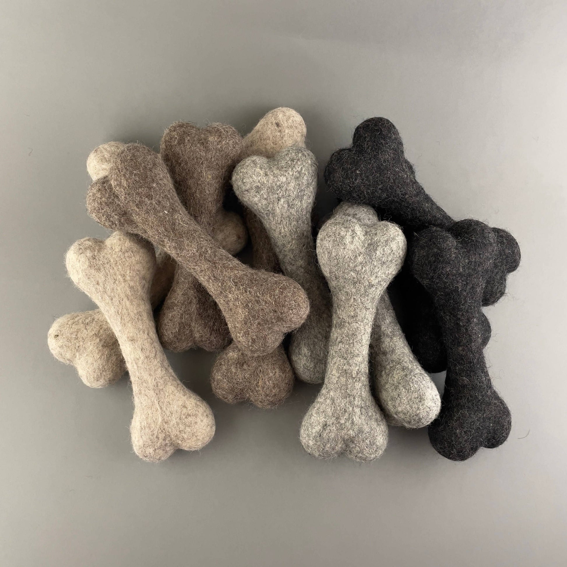 Hundespielzeug aus gefilztem Wollknochen (Helles Grau)