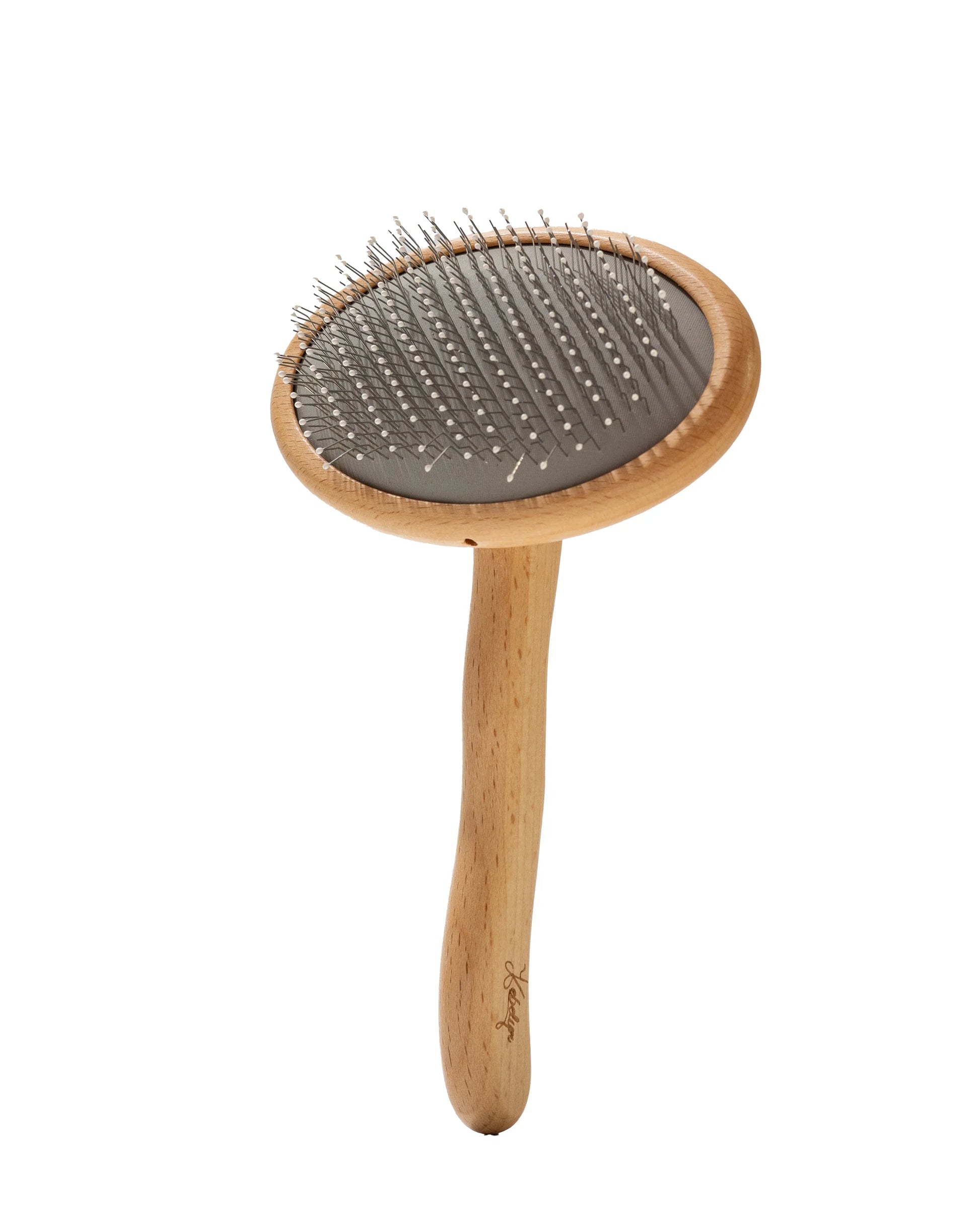 Die Woody Bürste Oval gibt es in 2 Ausführungen. Eine mit, und die andere ohne Noppen. Beide sind sehr gut geeignet für Welpen, Katzen und auch sehr weiches, feines Hunde-Fell.